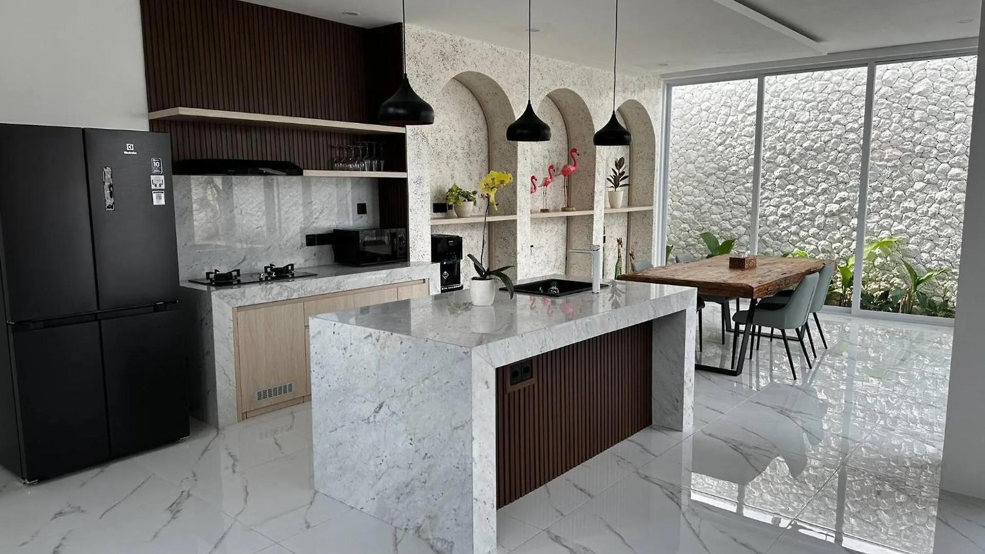 La Newly Built Villa Na Bali dispone de una pequeña cocina con tetera y una nevera para preparar comidas. Los huéspedes pueden cenar en el restaurante Bale Bale Coffee, situado muy cerca de la propiedad. Gracias a la parada de autobús Halte Seminyak, situada a 950 metros, los huéspedes podrán explorar Seminyak con facilidad.